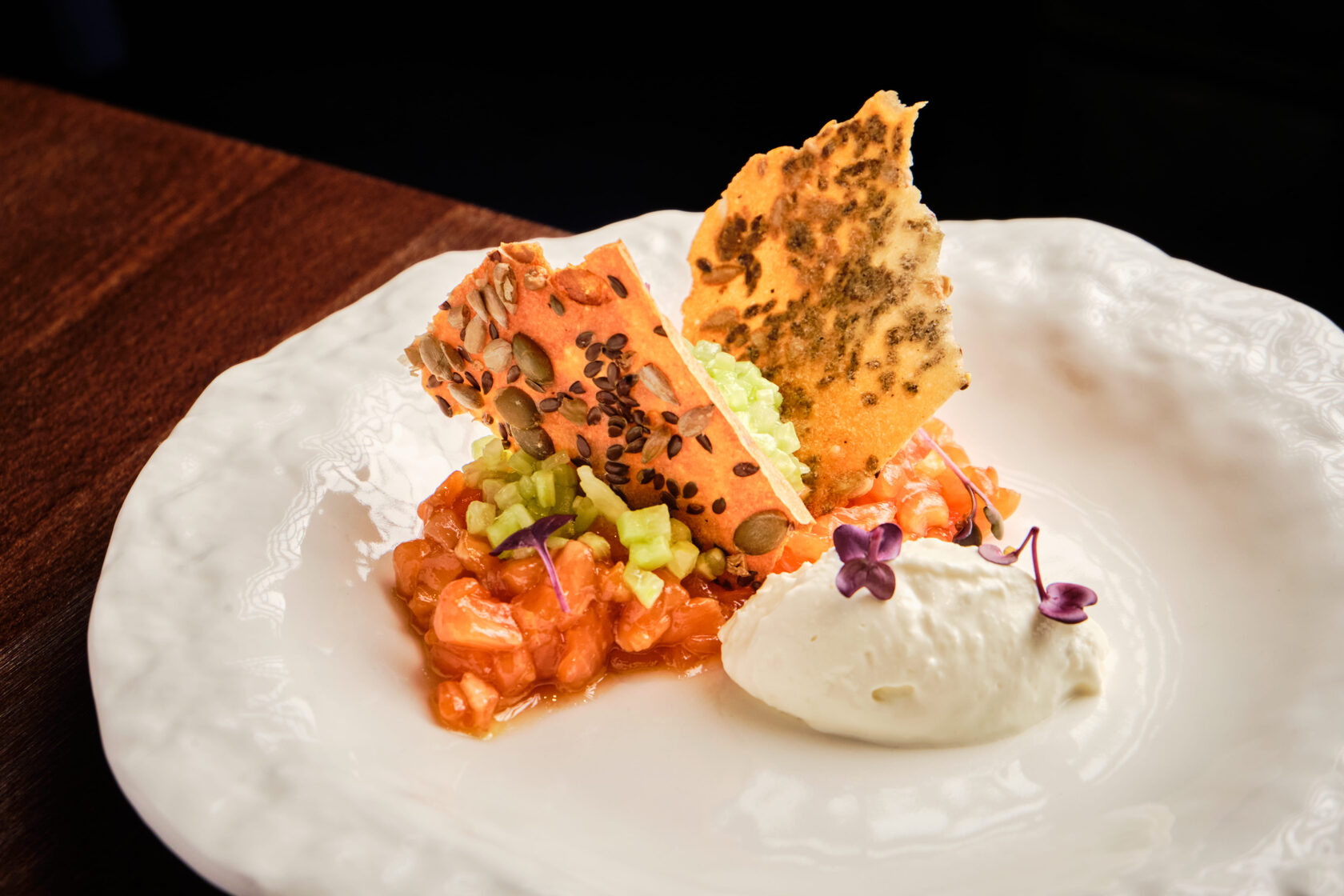 Хороший ужин начинается с правильных закусок. Наш тартар — это чистая свежесть: ручная нарезка, минимум специй, максимум вкуса рыбы. Соленая рыба — наша гордость. Мы солим ее сами, выдерживая ровно столько, сколько нужно, чтобы она стала упругой, маслянистой и невероятно нежной. Попробуйте — и поймете, почему к нам возвращаются.